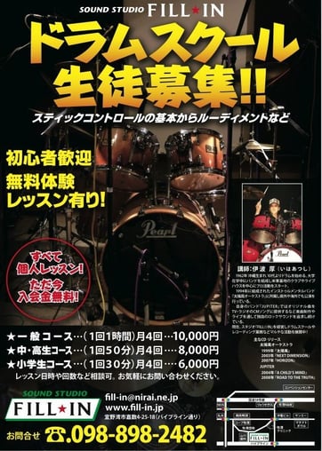 現在、スタジオ『FILL☆IN』を経営しドラムスクールやレコーディング業務などマルチな活動を展開中!